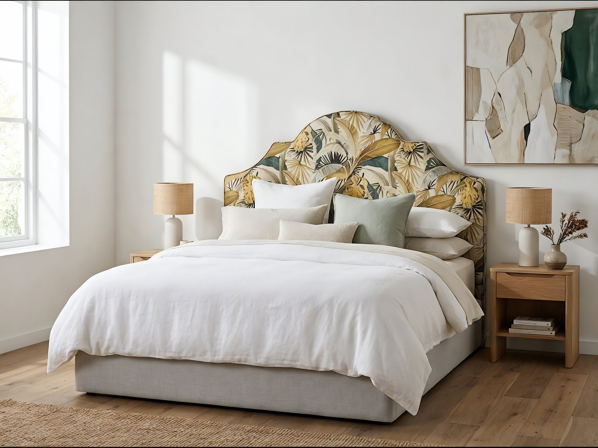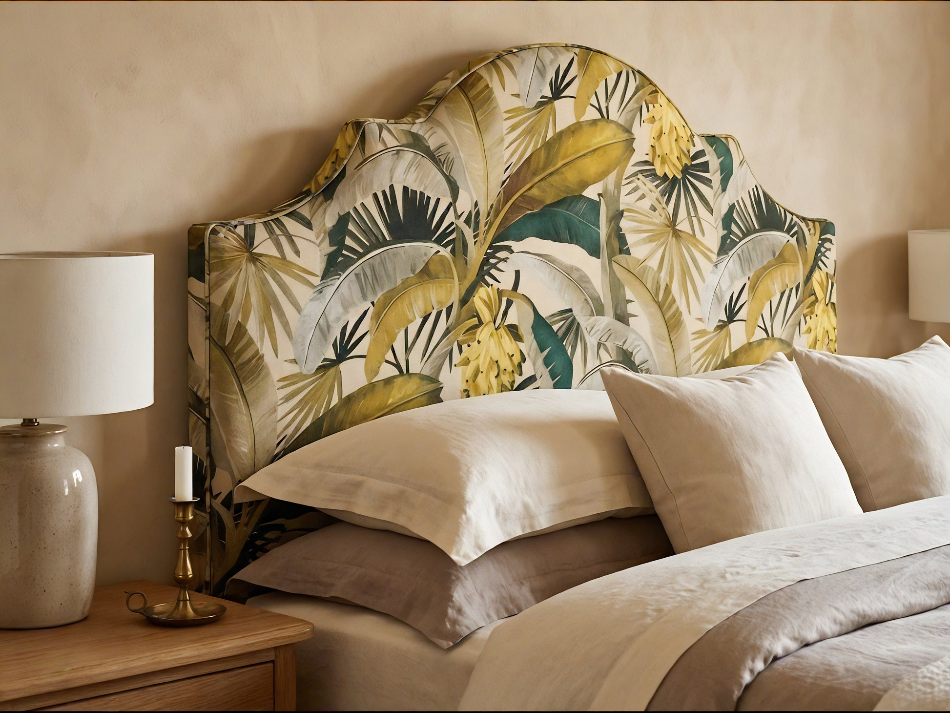 Paired with complementary bedding, the Iona creates a sense of balance and warmth, elevating the bed into a considered focal point rather than just a functional element. The generous height provides comfort when sitting up, while the curved top adds a subtle sense of softness and craftsmanship that rewards closer inspection.